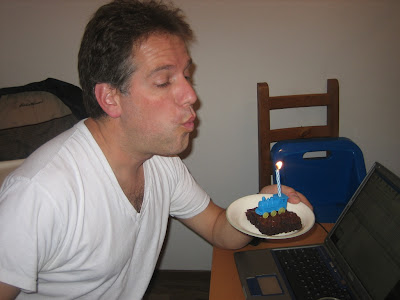 When Gerard arrived home, we presented him with his card and birthday gifts. Mom got him a pen desk set with his name engraved, and I bought him a small barbecue. We left our barbecue in the U.S. and Gerard has been itching to barbecue since we got here. You should have seen me trying to buy this thing. The German sales associates gave me all these funny looks because I was buying a barbecue at this time of year. They had already put the barbecues away in the back of the store, and they had to uncover them for me to decide which one I wanted. Thankfully, Gerard liked his present, and I didn't have to return it.